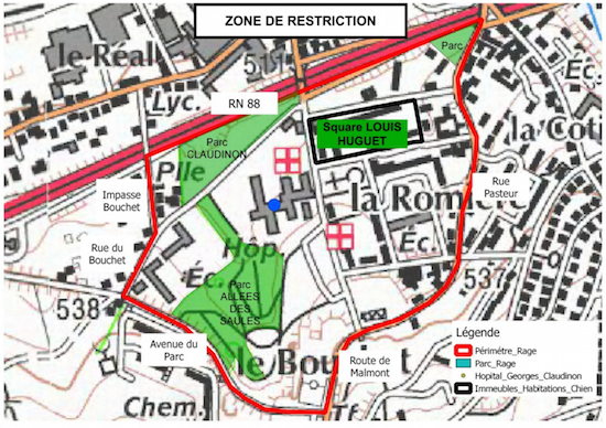 En mesure de prévention, la ville du Chambon-Feugerolles a établi un périmètre de sécurité. Les animaux carnivores domestiques (chien, chat, furet) qui n’ont pas été vaccinés, ou dont la vaccination n’est pas valide, ne pourront plus circuler librement dans la ville. Ils ne pourront pas non plus sortir du périmètre.