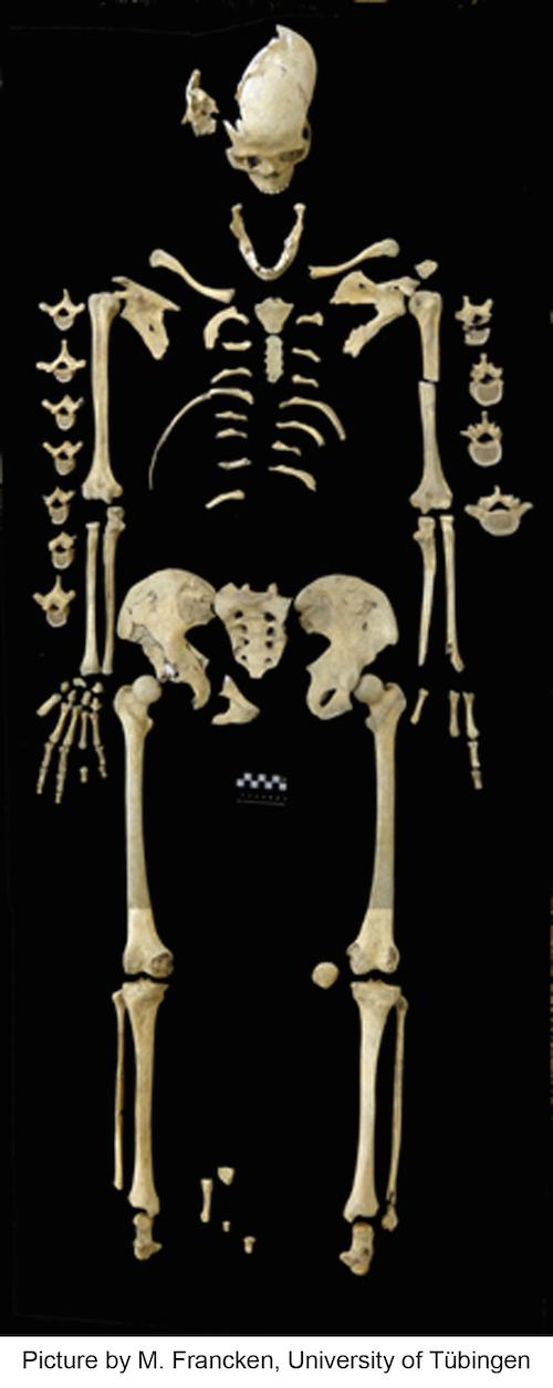 « Nous avons examiné plusieurs os du squelette grâce à notre système de tomographie par ordinateur, et nous avons découvert un relâchement inhabituel du tissu osseux intérieur, l’os spongieux, au niveau du haut de l’humérus droit et du sternum », explique le Dr Heike Scherf. C’est un signe de leucémie. Les autres hypothèses (ostéoporose, troubles de la thyroïde…) ont été écartés car les ossements ne présentaient pas les signes caractéristiques complémentaires.
