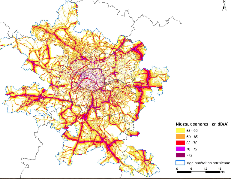Cartographie du bruit routier en Île-de-France la journée (Source : Bruitparif)