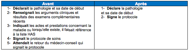 En pratique, lorsque le médecin utilisera le nouveau protocole de soins électronique accessible sur Espace Pro, la réponse de l’Assurance Maladie sera immédiate alors qu’avant la réforme, le médecin devait attendre le retour du médecin conseil qui co-signait le protocole.